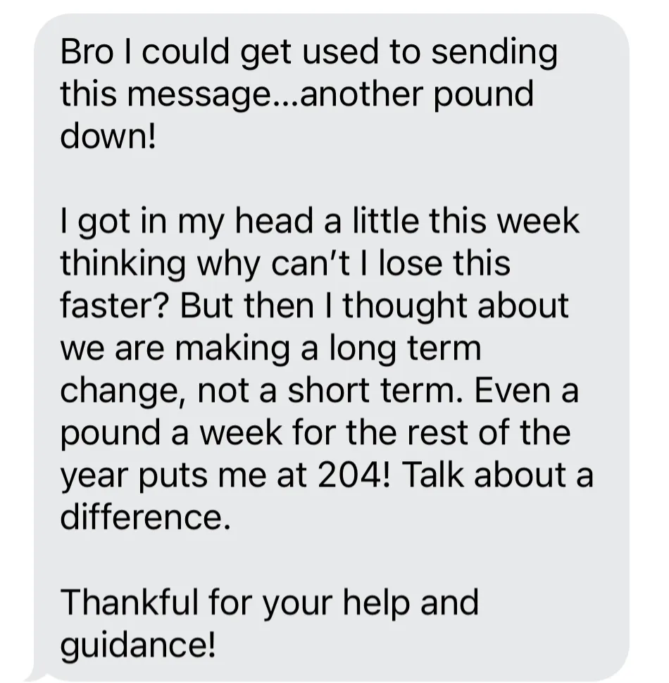Bryan Covington nailed what most guys miss: this isn’t a 2-week sprint — it’s a long-term identity shift. He hit a moment of doubt (“why can’t I lose this faster?”), then reframed it like a leader: one pound a week compounds into a completely different life. That’s the real transformation — not just seeing the scale move, but learning how to stay steady when your emotions try to rush the process. Another pound down… and more importantly, a man who’s thinking long-term and executing like it.